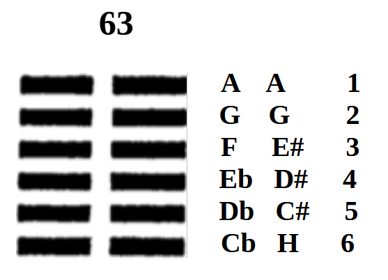 Ez az egyetlen pár, ami úgy felezi egymást, hogy a kettő összege kiadja a Ji csing végösszegét, a 63-as számot. Hamarosan tapasztalni fogjuk, hogy ez a két szám, ez a páros jelentős kapukat nyit meg a Teremtés titkaiban.