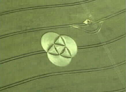 jelben szereplő Van még egy ehhez hasonlatos gabonakörről fotónk, amely szintén ugyanezt tanítja. Ebből hiányoznak a körön belülre eső erőteljes metszékek, de azért felfedezhetők a körök határai. Ez a pontos, bár kevésbé látszik látványosnak. Ezt a jelet szabályosan egy ilyen alakú nyílással, ablakkal szokták ábrázolni. |