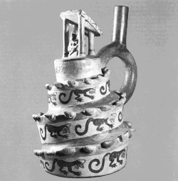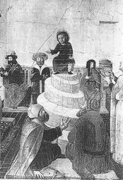 Ez a furcsa kis kerámiaedény minden lényegeset elmond. Az edényben vizet tartottak, és valóban a Teremtő belsejében Víz típusú időrendszer van. A csúcsra óra ellenkező irányban lehet feljutni a kúpos paláston. Az edény tetején - a kis háromoszlopos házikóban - egy kis emberalak ül. Ez a pont a jelen helye. A kancsó füle egyúttal cső is, amelyen át a kancsó tartalmát, ezúttal az életadó vizet lehet kiszívni. Ez a korsó Anya típusú, mert balos. A jobboldalon lévő középkori festményen is felismerhetjük ugyanezt a motívumot. Itt a gyermek Jézus tanít egy ugyanilyen emelvényen. Ez az óra egyező irányú, Atya típusú Teremtő. Ez sok ezer éves hagyományunk. Fontos. Ez a lényeg. Népeink minden erőszak ellenére megőrizték a legnagyobb titkot. Úgy, hogy kitették a kirakatba. Ott senkinek nem tűnt fel. |
