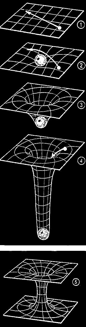 A gravitáció misztikus jelenség a mai tudományban, mert hiányoznak azok a természet alapjait képező jelenségek a palettáról, amelyekkel megérthető. Schwartschild matematikai megközelítésére szokás hivatkozni, aki eléggé jó elképzelések irányában mozdult el, de a nagyközönség számára ezek ugyanolyan ezoterikusak, mint a kártyajóslás. Gyakori megoldás ez az itt megmutatott ábrasor, ahol egy síkot (ez akar a tér lenni) elgörbít a tömeg. Ez egy szarvas hiba, hiszen magát a teret sem definiálták. Ez egy kezdetleges mátrix. Itt a tömeg függetlenül létezik a tértől, ami jelen esetben egy mátrixsík, és ez a "teher alatt behorpad, vagy "benyúlik", mint egy kifeszített gumilepedő. Láttam is ilyen modellt az ELTE fizikai intézetében valaha, és ebbe a kis benyúlt gumitölcsérbe oldalról belegurított fizikus kollégám egy másik golyócskát, amely körbe-körbe rohangált, mint egy bolygó a központi csillag körül, majd ahogy lendületét vesztette, fékeződött, úgy közeledett a nagyobb (a Napot jelentő) golyó felé, majd egyszer csak megállt mellette. Belezuhant. Az a pikáns az egészben, hogy a dolog valóban sok analógiát mutatott a természetben tapasztalható dolgokkal. Csak az a baj, hogy egy jóhiszemű tévedés többet árt a tudománynak, mint az, ami ellen szélmalomharcokat vív. Ha már van egy hihető megoldás, az nagyon lefékezi a felfedező kedvet. Ez a magyarázat eklatáns példája volt ennek a veszélynek. Száz évvel elodázta a kérdés valós megoldását. A tudománynak maga a tudomány okozza a legnagyobb károkat. A tömegek környezetében valóban jól érzékelhetően görbült a téridő. Ez a régi feltevés és megfigyelés helyes. Görbült, de nem elgörbül, hanem görbültre keletkezik. Így azután egyetlen fénykvantumnak is van tömege, mert az is görbült tereket kelt. A fénykvantumok hullámtere többnyire acentrálisan gömbszerű. Régebben (tizenöt éve) még mást írtam volna, de éppen mostanában hírlik, hogy nagyon lelassították a fényt, és szerintem teljesen meg is lehet állítani a fénykvantumot, hiszen a térkvantum is ilyen "álló" fénykvantum. Csak forrásszámukban térnek el egymástól. Ez egyúttal azt a reményt is éltetheti bennünk, hogy közönséges fénykvantumok is manipulálhatók lesznek, így azokból mesterségesen térkvantumokat hozzunk létre. Ennek a csillagközi űrutazásnál lesz pótolhatatlan jelentősége. Térugrások a jövőben csak akkor kivitelezhetők, ha az űrhajónknak saját térforrása van, mert ennek híján nem marad meg az anyag az idősemmiben. Eltűnik. Csak az űrhajósok lelke éli túl a dolgot. Még szerencse, hogy ilyen térforrás nélkül el sem tud oda jutni. Persze ha már nekünk is sok órányi UFO felvételünk van mozgó filmen, akkor a nagyhatalmaknak is bizonyára van ilyen gyűjteményük, és minden lejárató handabanda hiábavaló, mert az emberek fele hisz az UFO-k létében. Nagyon sokan láttak is ilyeneket. Nos, ezek a felvételek sok olyan részletet tartalmaznak, amely kizárja a hamisítást. Erre egy szkeptikus persze nem figyel, mert meg sem nézi ezeket a felvételeket, vagy pedig figyelménél sokkal nagyobbak az előítéletéből fortyogó indulatai. Pedig sokat veszítenek. Ez persze nem lenne olyan nagy baj, ha véleményüket, mellyel végtelen tehetetlenségüket és lustaságukat palástolják, bölcsen magukba zárnák. A tér hajlítgatásáról beszélnek, és úgy akarnak eljutni a távoli csillagokig, hogy topográfiai Móricka ábrákon igazolgatják annak a távoli jövőnek a lehetőségét, amikor majd ide tudjuk húzni a csillagok távolából a tér ottani pontját, mint egy lepedő csücskét, és ezét a távoli "idősík" szinte ugyanoda kerül, ahol mi most vagyunk, és ezért az utazás roppant rövid idő alatt megtörténhet. Ez esetben persze a mi terünk is ennek a lepedőnek a része, és ezt a két síkot egy féreglyuk köti össze, amelyen át át lehet jutni a tér nagyon távoli, és most mégis közelünkbe került. Az ötlet évszázada ugyanott tart, és nem is fog innen továbbjutni. Mert alkalmatlan. Ilyen féregjáratok nincsenek a téridőben. Matematikailag kijönnek mikroméretű "féregjáratok", és ezek roppant rövid életű valamik. Ezek alkalmatlanok arra, hogy csillagközi űrutazásokat tegyünk meg. Ha belegondolunk van hasonló a jelenségek szintjén is. Ilyen példának okáért az alagút hatás (tunnel effect). Itt ugyan csak egy roppant kis méretű elektron ugrik át valahogy egy valencia sávon, vagy egy dielektrikumon, de az tény, hogy valahogyan átkerül. Ha a jelenséget makroméretekben is elő tudjuk idézni, akkor az mát hasznos dolog lenne egy korszerűbb űrtechnika kialakításánál. |