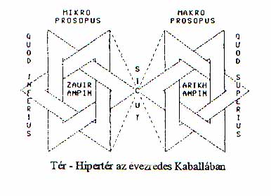 It can be seen in our small pyramid-like figure that the dimension number never rises above 5. That is why that gray gate can be seen in the middle on the pyramid. Space is 5 dimensional for three times spans. You can work it out if you step trough five sources on the three diamonds figure above. In reality, the three diamonds are in one place, it is easier to follow the creation process of space in this way. The Water type transporter point is represented in this figure now at the intersection of the body diagonals of the octahedrons (blue). This is the dragon’s heart, which is not tachyon, but a pulsing, pumping, stationary source (the princess), whose duty is the forwarding of existence. |
