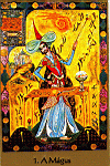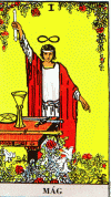 Ez maga az univerzum ősállapota, az Isten, mielőtt hozzáfogott volna a teremtéshez. Ez maga a potens. Ezt használták a pajzs centrális díszítő motívumaként, amely mágikus erővel is bírt a harcosok szemében és a valóságban is, hiszen "simili similis gaudet" elve lépett itt működésbe. A hasonló a hasonlót vonzza. Azzal, hogy ezt a jelet a pajzsra festették, magával a teremtővel érezhették a közvetlen kapcsolatot. Ez nem más, mint a megvalósított topográfiai rezonancia. Azt a legdogmatikusabb materialista is készséggel elismeri, hogy egy behangolt G húr rezonál egy másik behangolt G húrra. A HÚR közelítéssel (ha a vastagságát elenyészőnek vesszük a hosszához képest) hozzávetőlegesen EGY DIMENZIÓS (a mai felfogásban). Jól rezgő, rugalmas szalagokkal síkbeli rezonanciákat hozhatunk létre, de csövekkel is kiválthatjuk a jelenséget, amelyeknek falvastagsága elenyésző lehet az egyéb kiterjedéséhez viszonyítva, és így képezhetünk topográfiai átmenetet a sík világból a következőbe. A SÍK SZALAG KÉT DIMENZIÓS, a CSŐ HÁROM. Itt a dimenziókat a hagyományos értelmében értettem. Azt is készségesen elismeri minden szakember, hogy egy C hangmagasságú harang rezonanciában van egy másik ugyanolyannal. A harang már valóban háromdimenziós tárgy, bár még mindig csak átmenetnek hat egy tömör acélgolyóhoz képest, amely szintén mutatja a rezonancia jelenségét. A GOLYÓ HÁROM DIMENZIÓS. Ezek után úgy gondolja a szkeptikus, hogy a mindenhol világosan megmutatkozó rezonancia a téridő négydimenziós világában egyszerűen semmivé lesz?! Ez KÉPTELENSÉG. Mert KÉPTELEN felfogni, miután szegényes a KÉPZELETE. Csakhogy az itt kiemelt szavakban megjelenő "kép" nem egy síkbeli alakzat, de még csak nem is egy szokványosan térbeli, hanem élő, mozgó dolog, vagyis egyértelműen négydimenziós, miután a mozgás - így a rezgés - idő nélkül nem is jellemezhető. De egy álló kép sem, hiszen az is az időben létezik. HA VALAMI LÉTEZIK, AZ CSAKIS AZ IDŐ DIMENZIÓJÁBAN LÉTEZHET. A TÉR VAGY A DIMENZIÓ SEM ÁLLHAT MÁSMILYEN DOLOGBÓL, HISZEN A LÉTEZÉS ÉS AZ IDŐ ELVÁLASZTHATATLANOK. Az ősi felfogású népekről az agresszív térhódításban "igaz hitet" terjesztő egyházak égisze alatt terjeszkedő gyarmatosító országok papjai azt terjesztették, hogy pogányok, gyaúrok, gojok, hitetlenek, istentelenek. Ezzel teremtettek maguknak "jogalapot" a kiirtásukra és a leigázásukra. Ilyenek a hazugság álarcai. Ma a népirtást "etnikai tisztogatásnak" mondják, amelyben az "etnikai" szó csak az intellektuális néprétegeknek érthető, a tisztogatás pedig amolyan "jó dolog" érzését kelti az emberben, mert az a jó, ami tiszta. Ezért csináltak a tudásból hitet. A hitnek nem kellenek indokok. Azt terjesztem, hogy "úgy van" és kész, és ezt a többiek (az elbutítottak) kritikátlanul elhiszik. A gondolkodásra pedig azt mondom, hogy "sátáni", és ezzel máris "jogalapom van" a gondolkodók megsemmisítésére. Így minden értelmet elpusztíthatok. Ma is gyakran jelenik meg a vallásháború égisze alá bújva a politika, hiszen a hite által a nép könnyebben fanatizálható. A megnyilvánulatlan a matematikánkban a végtelent jelenti, de ez a térbeli alakzat a másik nézetében ez egy kör, a közepén egy ponttal, ami a semmi jele, a 0. Ahogyan azt a fejezet elején már kifejtettük. Az angol nyelvben eléggé nyilvánvaló a logikai egyezés, hiszen a telefonszámoknál a nullát az angolok most is "Ó"-val mondják, vagyis az Ó betű és a nulla kapcsolata tagadhatatlan. Ennek a nyoma látható az afrikai pajzson is, ahol a végtelen jelet a másik nézet, a kör veszi körül. Ez pontosan a komplex téri eredményt mutatja, hiszen az egy 90 fokkal elfordult forrással egészíti ki a valós térit. Hihetetlen! Komplex topográfia egy "buta" ősember pajzsán... Ez a logikai analógia a megnyilvánult esetében továbbra is fellelhető, és ezt a világ minden nagy civilizációja egyöntetűen őrizte, és időtlen idők óta megtalálhatjuk a misztika és az archeológia teljes keresztmetszetében is. Itt egy tarot kártya (babonás jóskártya) lapját mutatjuk meg önnek, amelyen a mágus kalapján jelenik meg a forrás, és egyúttal a Tűz jele is, amely majd a harmadik fejezetben válik nyilvánvalóvá. A kártyát egy igazi, keleten nevelkedett perzsa szakértő tervezte; Kazanlár Ámin Emil. A mágus, aki világot teremtés az erő ami mozgásban tartja. A csúcsos sapka, amely feltűnően hasonlít a forrás megnyilvánulatlan alakjára is, de itt ennek egy rétegezett alakja jelenik meg, amely megoldás a számítógépes modellezésünknél ugyanilyen alakban felmerült. Ilyen kiáradást, időszerkezeti struktúrálódást is feltételeztünk.