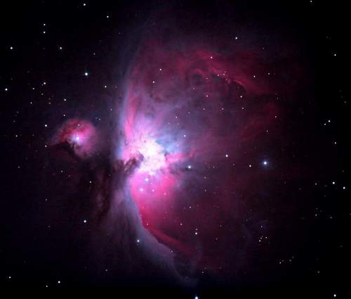 Ez a diffúz köd az Orion "lába között" figyelhető meg. Pontosabban ez kettő, mert a balra lévő objektum az M 43 jelet viseli. A nagy halmazt M 42-nek nevezik. Úgy 1000 fényévre lehet tőlünk. Fiatal köd, és az ionizált hidrogénplazma világít benne. 1610-ben Nicholas Peiresc látta meg először. Akkor fedezték fel a távcsövet. A köd fiatal, úgy 30000 éves lehet. Ez a csillagászatban csak egy pillanat. Szabad szemmel is láttam már, mert nagyon fényes. Egy kis maszatnak látszik. 25-50x nagyítással zöldes fénye van. A térkép alján részlegesen látható az Eridanus folyó csillagkép, latinul Eridanus (Eri), egészen a látóhatár mentén lehet megfigyelni, de leginkább csak vidéken lehet azonosítani. |