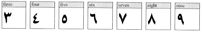 Ennek sok szempontból is nagy fontossága van, mert a teremtő időforrás "száját", az erő száját is jelenti. A magyar néprajzban is rátalálhatunk a nyomára, de jelentéktelen megjelenése miatt könnyű félremagyarázni. Nagy segítségünkre van a kínai jelkészlet. Ha a nagyobb négyzetbe beleírunk egy kisebbet, akkor azt jelenti, hogy visszafordulni. A hagyományaink szerint négy teremtési főág létezik az univerzumban. A négyes szám ezt őrzi. A száj, a forrás visszafordulásából születik az univerzusz, és ezáltal az univerzumban minden, amit ismerünk. Ez a fent hui értelme, és ezért van benne a forrás jele. Nekünk azt tanították, hogy mi arab számokat használunk. Ezt nem ártana az arabokkal is közölni, mert az arabok bizonyára ebből mit sem sejtenek. Itt az arab karakter készletemből kiemeltem a számokat. Ki érti ezt?
