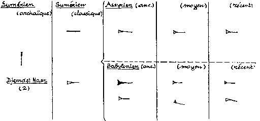 Itt az evolúciós jeleknél ez az achaikus Úr nagyon érdekes, mert ez nem embert jelent, hanem a mozgásba lendült forrást. Nem két forrást, hanem a mozgásba lendültet. Miután kiáradása ilyenkor már szolitonszerű, hol eltűnik hol újra megjelenik. Így mozgása valahogy így ábrázolható: - - - - - - - - - - - - - - - -. Hol volt, hol nem volt. Itt azonban mégis el kell gondolkodnunk a dolgon, mert itt a Dávid csillag őse jelent meg, ami nem a zsidók kisajátítható egyéni jele, hanem egy sokkal régebbi és sokkal univerzálisabb jel. Földön kívüliek is használják. Minden ősi eredetű vallás használja. Ez a mindenható jele. Minden galaxisban ismerik. Vagyis a sumérek nem is voltak hitetlen pogányok. Nézzük hát az evolúció végeredményét! Labat nagyot téved, amikor azt hiszi, hogy a bal oldali jelekből alakultak ki a jobboldaliak. A halad nem a dingirből alakult ki, bár a tér halad, hiszen fénysebességgel táguló, és maga a forrás is haladhat. Ezt jelenti a jobbról második függőleges oszlop két-két egyforma írásjele.