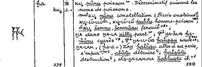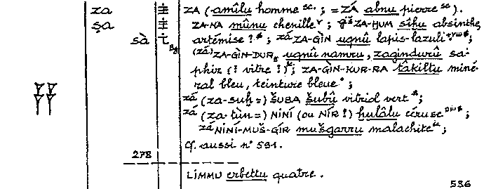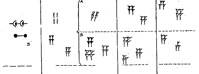 A négyes ékjelen még gondolkoznunk kell, mert Labat több négyes ékcsoportot sorolt a négyeshez. A hármat minden esetre három egymás melletti függőleges ékjellel jelölte. A kettőzött lefelé halad öregebbet vagy következő generációt is jelenthet. Ezt a jelet gyakran találjuk kristályok ásványok neve mellett (malachit, zafír) de a hozzá kapcsolt előbbi grafikus jelek mást is sejtetnek. A za, zü, és általában a Z hangot hordozók a negatívumokhoz társulnak a magyarban is. Zavar, zűr, zakkant, zizi, de az sz is sokszor negatív; szét, szar, szakít, stb. A legfelső sur az érdekes, mert itt a megfejtések; férfi (homme) és kő (pierre) (Péter=kőszikla). A kő, ko még hangzásilag is összecseng, de későbbi közelítésünk is ide-ide fog vezetni minket. Erre vezet a következő jel is.