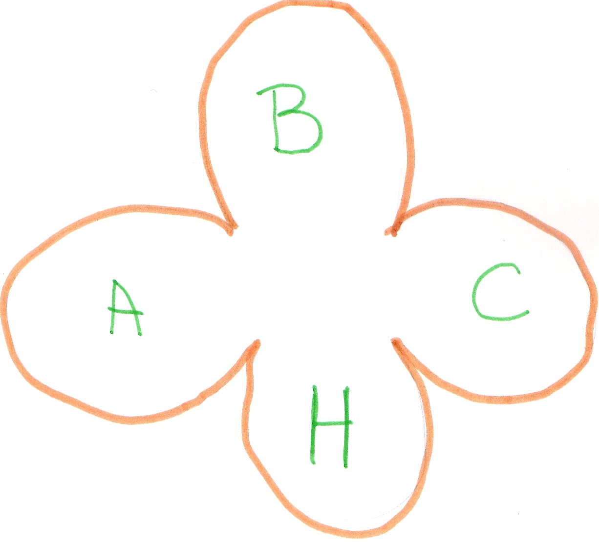 Az első betű B, az első hang B. Egy fél hanggal mélyebben helyezkedik el a második betű, hang, az A. A harmadik betű, illetve hang,az A-tól fölfelé a harmadik félhang, a C. Az utolsó, a negyedik betű, hang egy félhang távolságra van lefelé, vagyis mélyebben. Ő a H hang.
