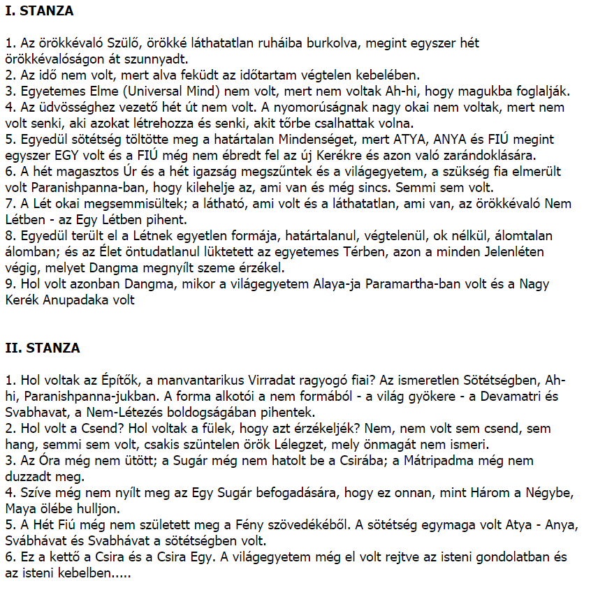 veszem Dzyan könyvét, azt a szentírást, ami vízálló és éghetetlen pálmaleveleken maradt ránk. Mit jelent ez? Akár több teremtési korszakot élt meg? Nagyon