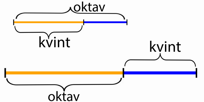 kvintet mind be lehet építeni abba az első oktávba-alaphang és az első felhang közé. Hogyan? Minden oktáv távolság frekvencia arányban a duplájának (a felének) felel meg.
