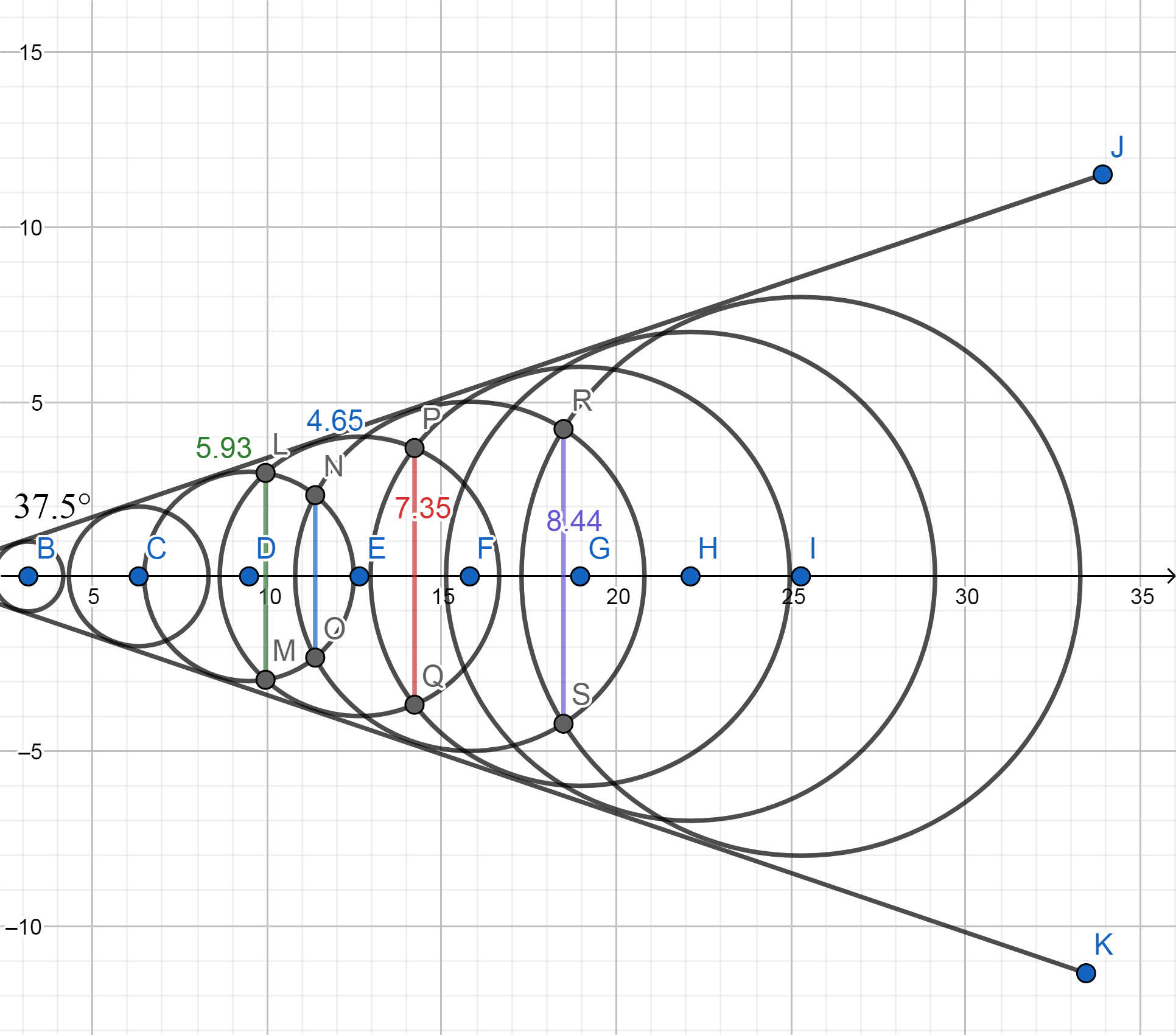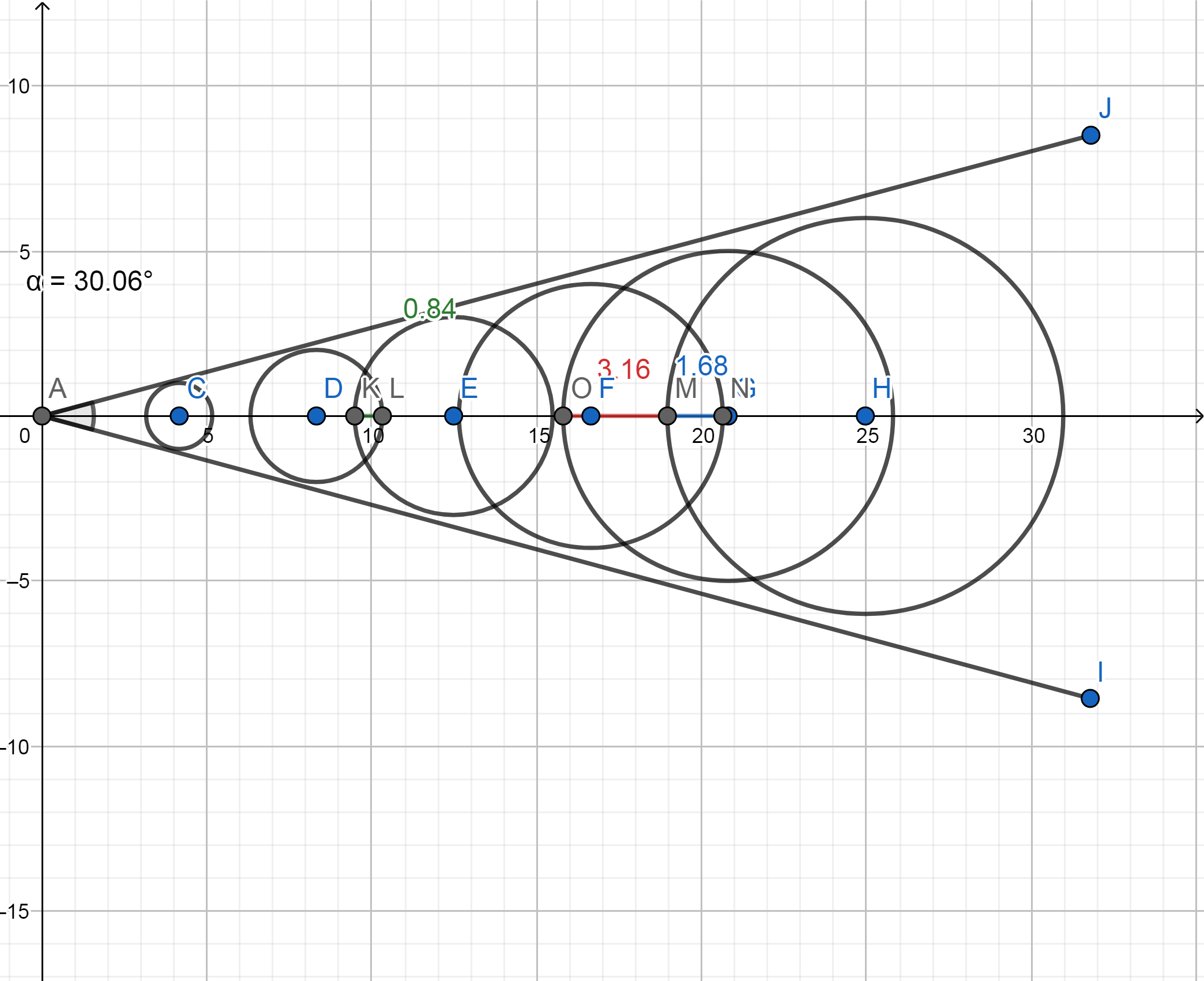 | Megszerkesztettük az RV=3,16-os kúpot az időszféráikkal együtt.