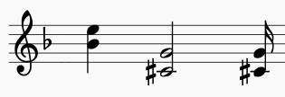 Az első tritónusz „fönt” van (Bé-E), a második „lent” van(Cisz-G). Mit