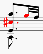 (pirosra festett) Cisz utáni 32-ed értékű G hang, és egy 32-ed ideig áll