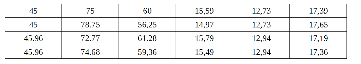 Kétszer 30.64°-os kúpszög. Az első variációban 30.01°-os kúpszög.