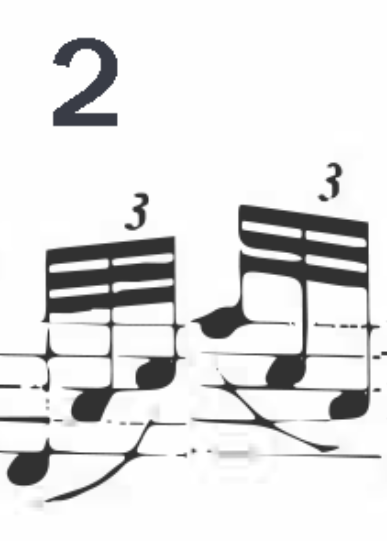 A négyes alakzat és hatos alakzat első hangja egyszerre szólalnak meg. Ezután a második hangok egymás után hangoznak el, majd a triola harmadik hangja következik, utána a triola negyedik hangja egyszerre szólal meg a négyes alakzat harmadik hangjával, ezt a triola ötödik hangja követi, majd a négyes alakzat negyedik, utolsó hangja következik és a triola alakzat utolsó hangja, a hatodik hang zárja a sort. Próbáljátok ki otthon, egyáltalán nem egyszerű feladat két kézzel ütögetni a két ritmusalakzatot, jobb kézzel az egyiket, bal kézzel a másikat egyszerre úgy, hogy mindkettő a megfelelő ritmusban hangozzon el.