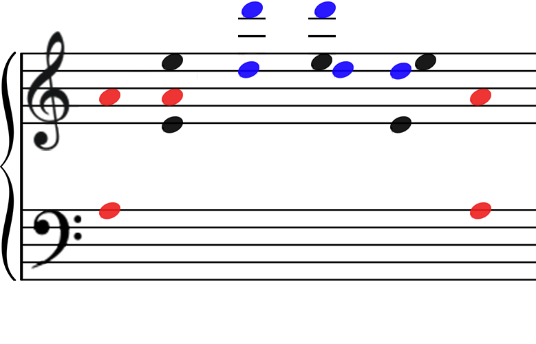 Melyik hangok szólalnak meg egyszerre? Az első, a harmadik és a negyedik. 3, 1, 4, igen már megint jelen van a Pi!