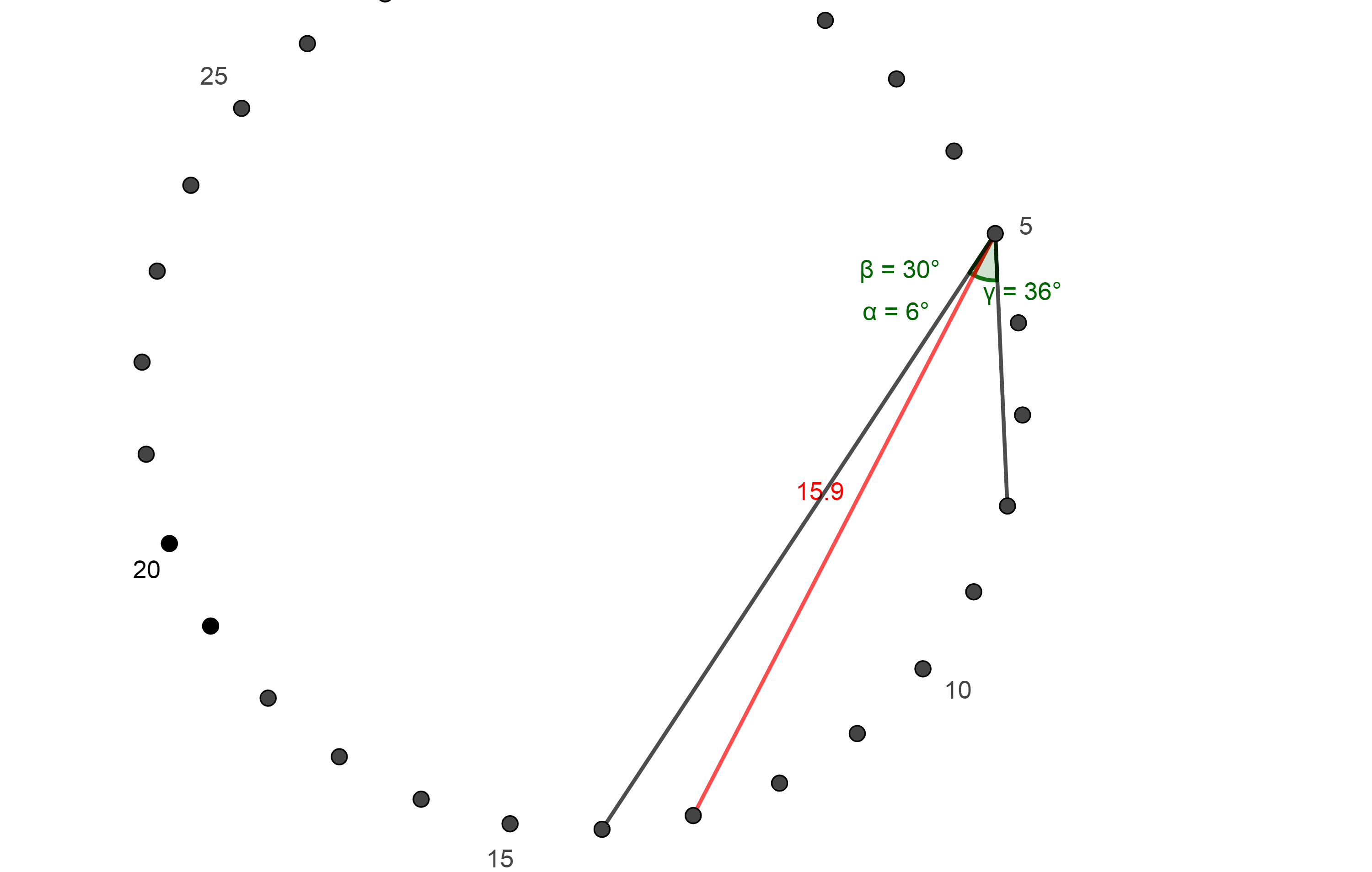 aranymetszési adata a körnek. Az 5. és a 14. pontok összekötésével