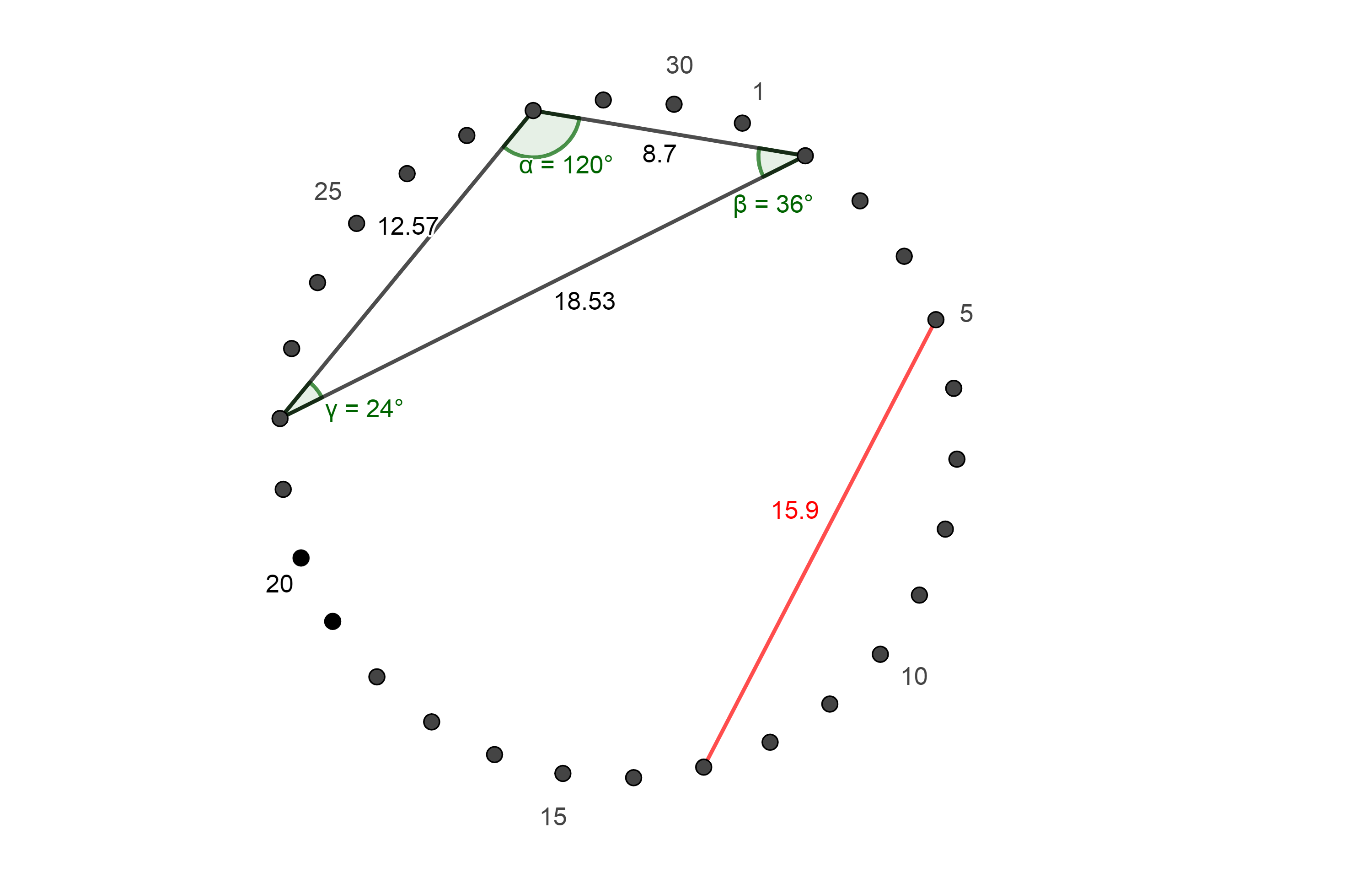 egy 30-as és egy 36-os szög. 30:6=5 és 36:6=6