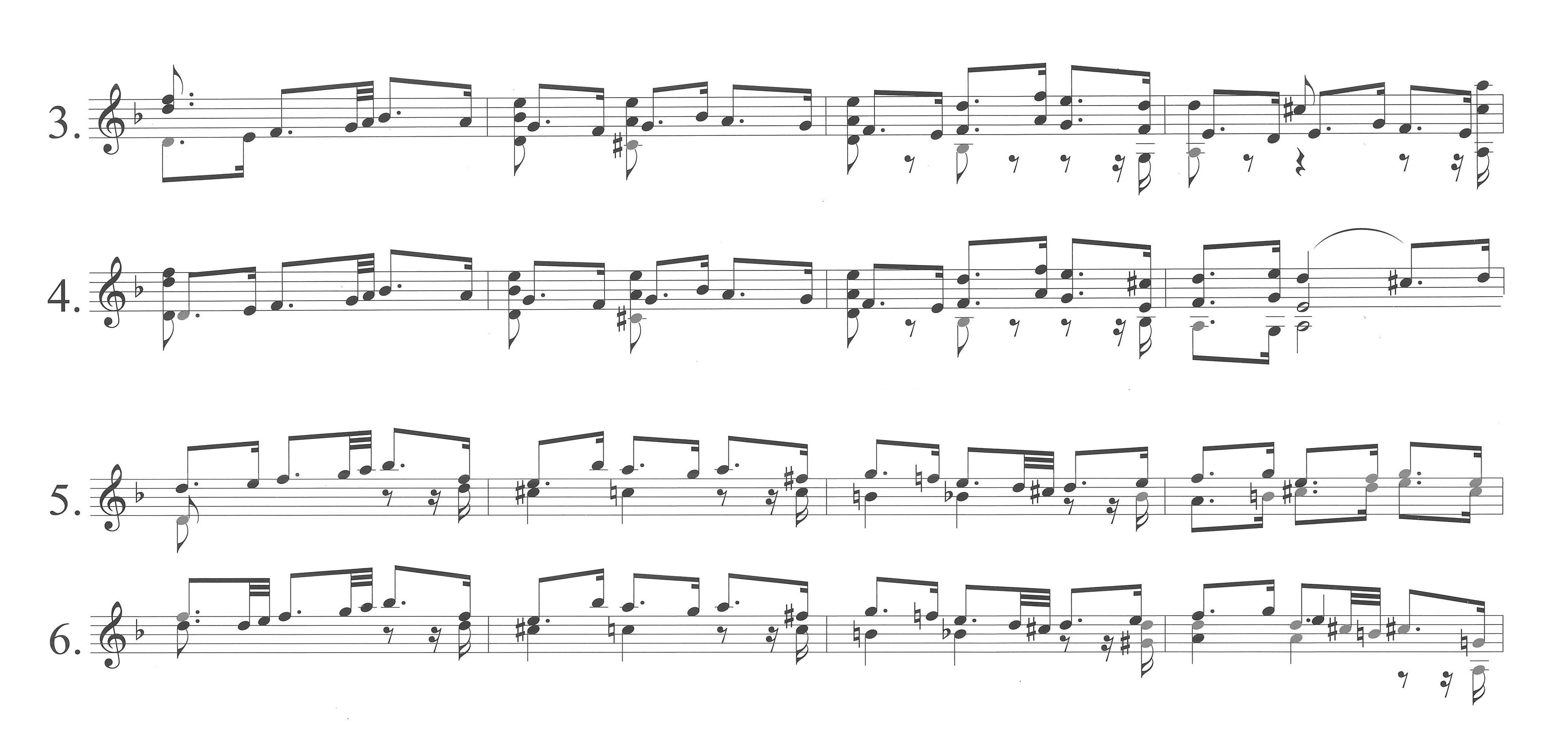Ha jobban megnézzük ennek a négy variációnak a kottaképét, észrevesszük,
