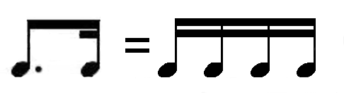 Ez a ritmusképlet kettő Hangból áll, az első Hang mögött egy pont