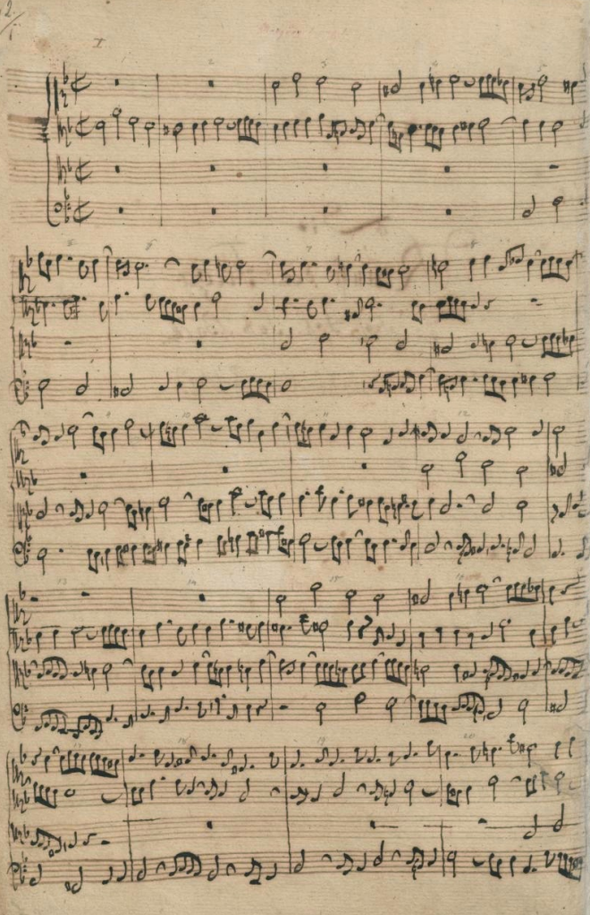 Bach által megalkotott kotta első pár üteme, az ő felosztásában