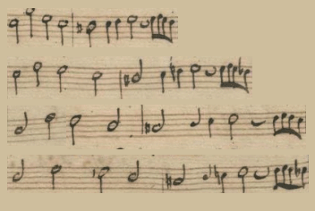 első két ütemben csak egy szólamban láthatunk kottajegyeket, tehát