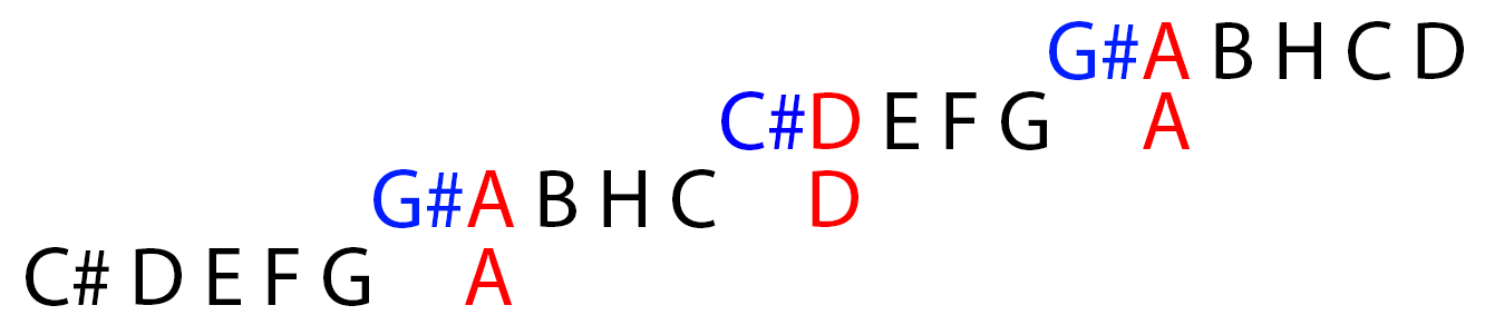 mellette elhelyezkedő átlós sor, ami ugye egy Hanggal kevesebb, mint az