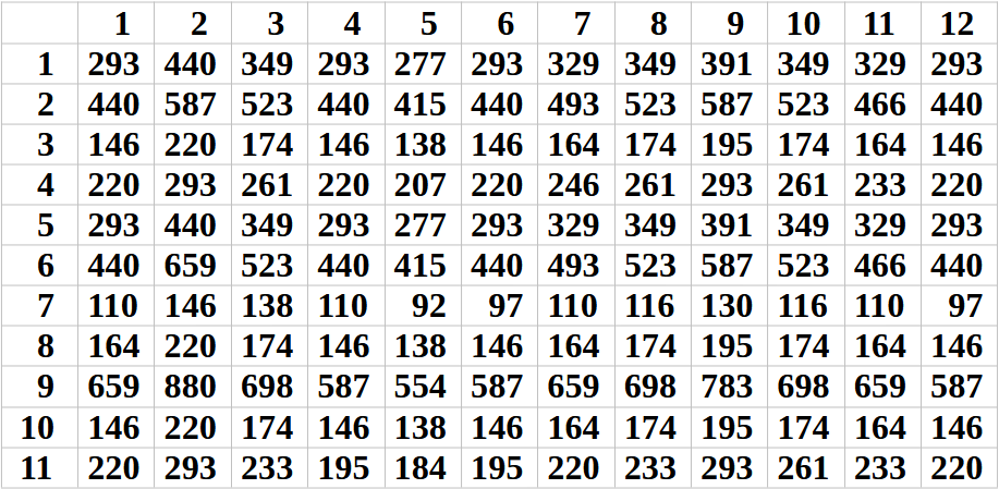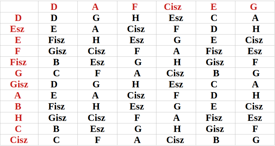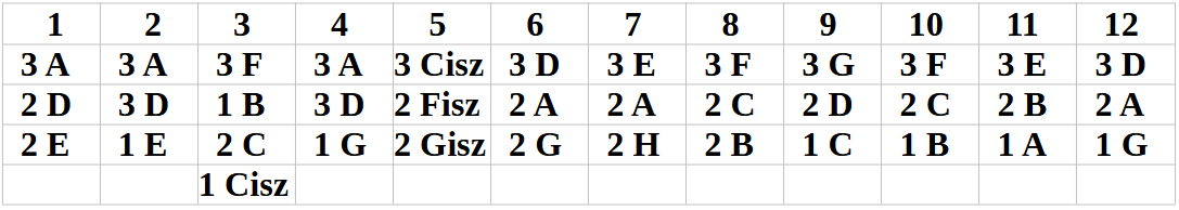 látjátok a legfelső sorban feltüntettem a lehetséges 11 Hangot, az