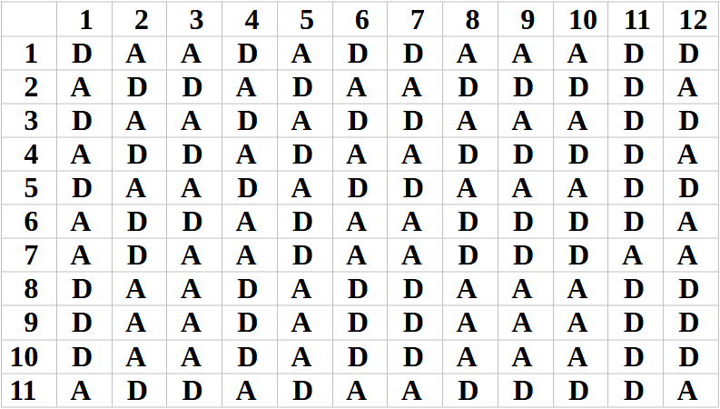 mivel az anti oldalon is 11 lépés van. Az
