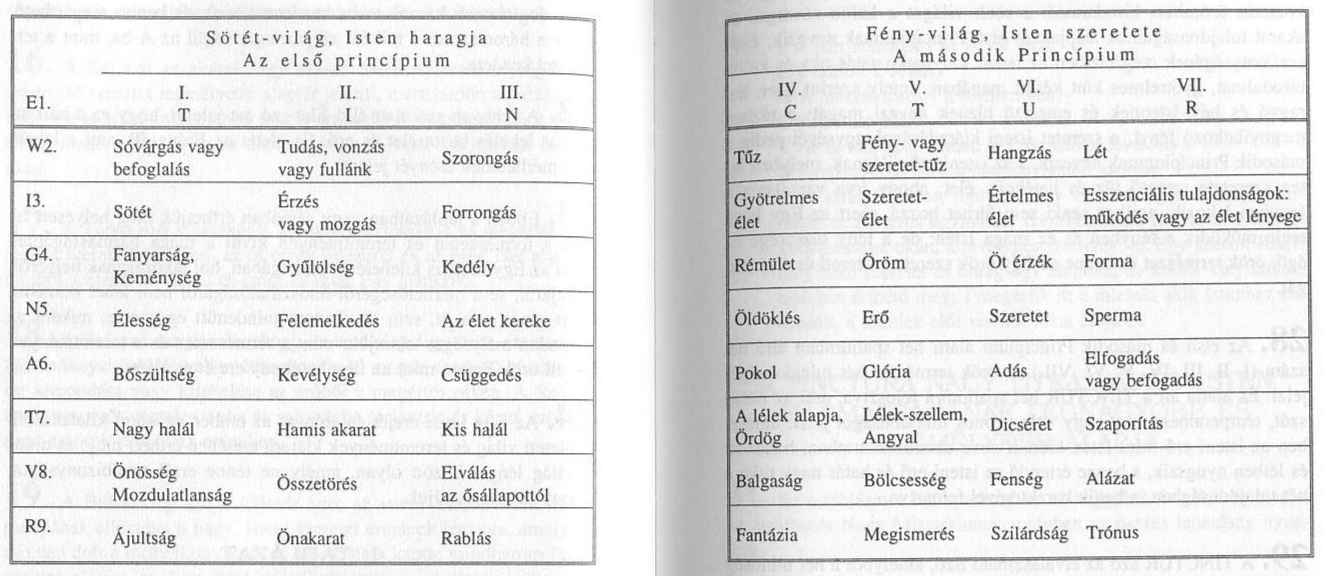 Az egyik legnehezebben megérthető mű Jakob Böhme: „ Szent Sóvárgás” című könyve, amit maga Teremtő Atyánk diktált neki. Három táblázatot találunk a könyvben az Isteni kinyilatkoztatás három princípiuma név alatt. Az első táblázatról szeretnék Veletek megosztani egy rövid gondolatsort: