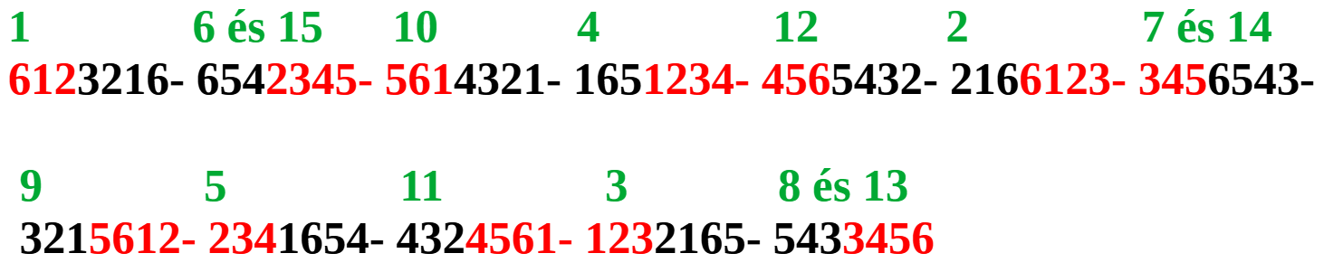 A hatodik sor: 32 hosszú, 32 rövid, ez pedig egy alkalommal.