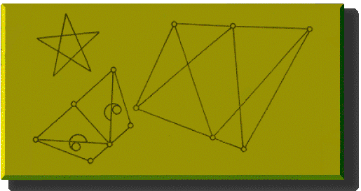 A SZERZŐ RAJZA A fenti rajz az eredeti kéziratból való. Nevezzük ezt erdélyi Arvisurának. Az eredeti hun-magyar Arvisura feljegyzések is aranylemezeken vannak, és ezek is. Emellett a továbbiakban olyan megfejtés is szerepelni fog, ami egyenes utalás erre a feltevésre. A rajz magyarázatát nem találtam, de a furcsa beszámozás is a téridőre, és ezen át a nagytávolságú űrutazásra utaló. Az aranylemez bal alsó ábrája még megengedné, hogy két tükröződő tetraéderre gondoljunk, de ez a másik jobboldali ábra nyomán készült már arra utal, hogy ez valami mást jelent. Például olyan CPT tükrözést is jelenthet, amelyben a csillagok keletkeznek és helyezkednek el a térben. Erre még további lemezek is utalnak majd.