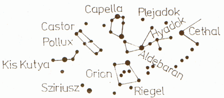 Az eredeti kéziratban ez az ábra volt ugyanezen az oldalon Ez a része az égnek bennem nem fedi a fölső csillagtérképet, de ettől még lehet helyes, hiszen nemcsak a Naprendszerből lehet szemlélni az univerzumot. Ez bizony békaperspektíva lenne. Hívjuk segítségül a következő lapot.