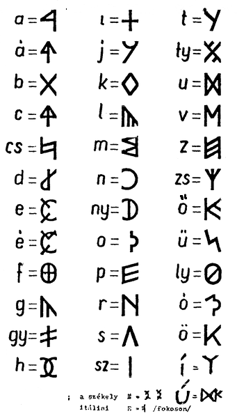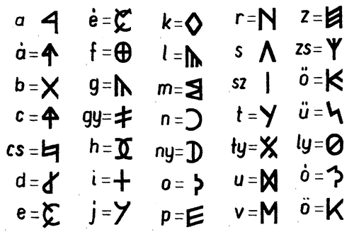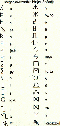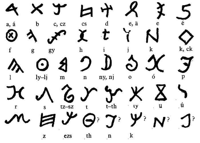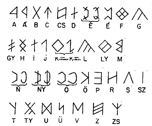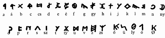 Úz-palóc ABC, a beavatottak titkos Arvisuráinak rovásjelei, amivel a palóc tárkányok is írtak.