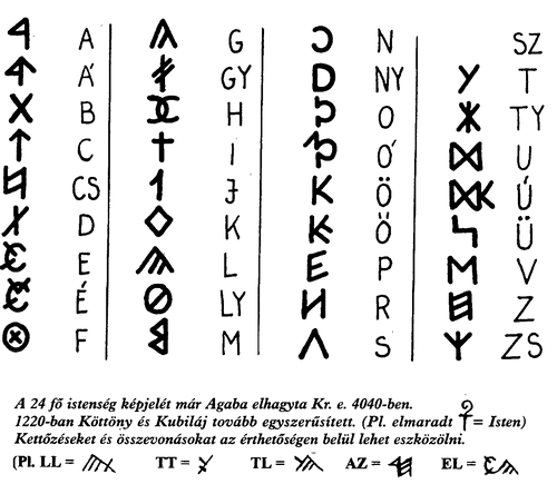 Szinzu ABC A dologban az a nagyon érdekes, hogy a szinzuk írását és nyelvét vizsgálva ez cseppet sem hasonlít az ó magyar Mária siralom régies nyelvezetéhez. Ma is gond nélkül megértjük, pedig elszakadásunk sok ezer évvel ezelőtt történt. Ez ugyanígy van az Arvisura szövegekkel is. Még jól olvasható a sok ezer éves üzenet. Kiknek vannak olyan sűrűn a nyelvében "jövevényszavak"? Lehet, hogy tudománytalan mese, hogy az ősapáink csak makogni tudtak? Nos, a hazug embert előbb-utóbb utolérik, mint a Sánta Katát. Kérlek, olvasd el ezeket az üzeneteket az aranylemezekről a fenti ABC segítségével.