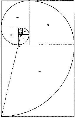 logaritmikus spirál a Fibonacci-függvény mentén növekszik.