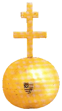AZ ORSZÁGALMA Az említett I. Imre-féle nagypecséten már kettős keresztes országalma szerepel. A leányági trónkövetelő cseh Vencelt és néhány hét múlva Károly Róbertet is megkoronázták. 1301 körül vert pénzén is szerepel egy kettős-keresztes országalma. Ennek képe nincs meg nekem, de az I. Imre-féle nagypecsét rajzolatát megtaláltam.